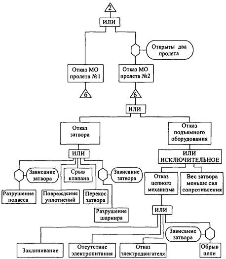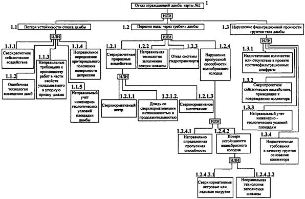 «Дерево отказов» для золошлакоотвала № 2 представлено на рис. П2.15. В табл. П2.6 содержатся результаты решения данного «дерева отказов», выполненного по формуле