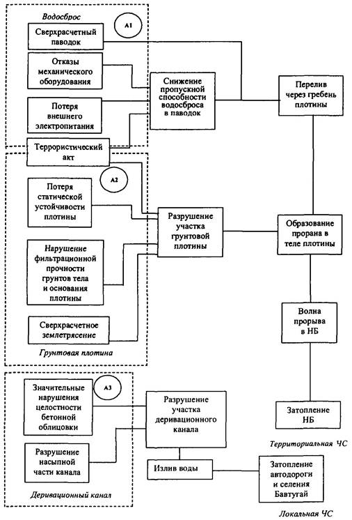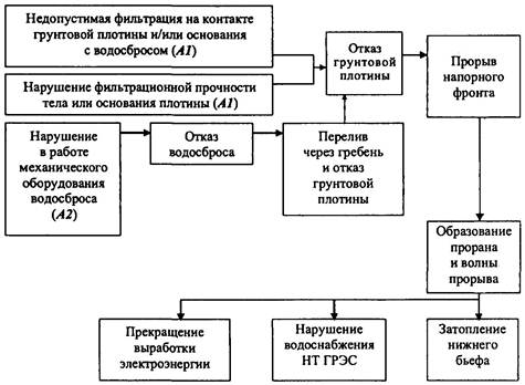 Необходимость учета разнообразной по характеру и полноте исходной информации о природно-климатических и социально-экономических условиях районов размещения ГТС, а также исключительное разнообразие условий их эксплуатации существенно затрудняют формализацию процедуры анализа и оценки риска аварий. При этом, если отказы затворов водосбросных сооружений весьма схожи с отказами оборудования в промышленности, поскольку возникают, как правило, при отказах элементов механического или электрического оборудования, стандартизованного в достаточной мере, то практически все виды отказов плотин и дамб при сверхрасчетных воздействиях на ГТС, а также вследствие нарушений устойчивости и прочности сооружений совершенно непохожи на таковые в промышленности. Особую сложность представляет анализ риска аварий ГТС в результате человеческого фактора (ошибочные действия персонала, запаздывание, бездействие в аварийных ситуациях, ошибки изысканий, проектирования, строительства и т.д.), который не поддается сегодня аналитическому моделированию ни в одной отрасли техногенной деятельности, но остается одной из главных причин аварий и неполадок.
