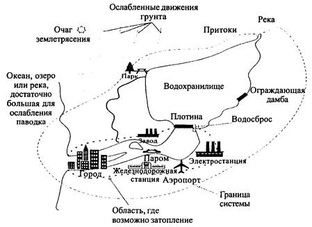 Рис. 2. Пример анализируемой природно-технической системы, формируемой на базе ГТС