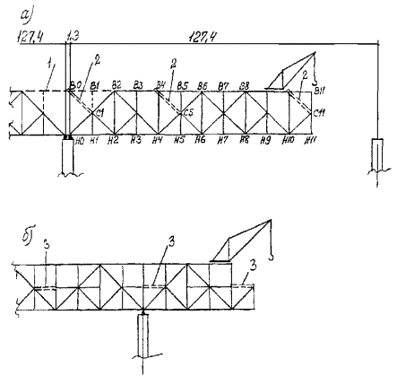 6.1 Монтаж пролетных строений с решетчатыми главными фермами рекомендуется по схемам, приведенным на рис. 1: