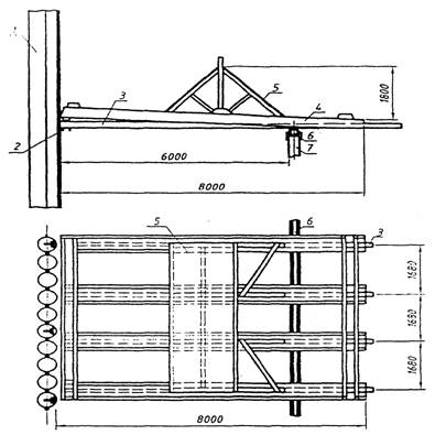4.1 Шпунтовая стенка из ШТС с анкерным креплением(рисунок 1) предназначена для удерживания грунтового массива от сдвига или еговращательного перемещения. Она состоит из ШТС, шапочного или колесоотбойногобруса, распределительной балки, анкерных тяг и анкерных свай.