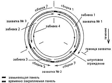 у)срезка временного крепления у всех панелей, ранее приваренных к верхнемураспорному кольцу (замыкающая панель из состыкованных отрезков, последняяпанель на захватке № 1 и вторая панель на захватке № 4); забивка всех панелейчерез одну на захватках № 2 и № 3 на проектную глубину несколькимипоследовательными проходками от конца первой захватки до начала четвертойзахватки и обратно;