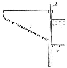 Описанныйвариант I технологии сборки круглогоограждения рекомендуется применять при недостаточном опыте сборки такихограждений, а также при неблагоприятных гидрометеорологических условияхпроизводства работ, когда требуется периодическое закрепление уже набранного встенку шпунта для предотвращения его разрушения от сильного ветра или волнения.