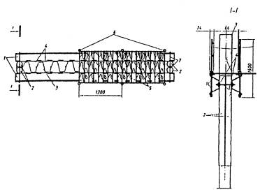 1 - массивгрунта; 2 - ПШС; 3 - шапочный брус; 4 - распределительнаябалка; 5 - анкерная тяга; 6 - анкерная свая.
