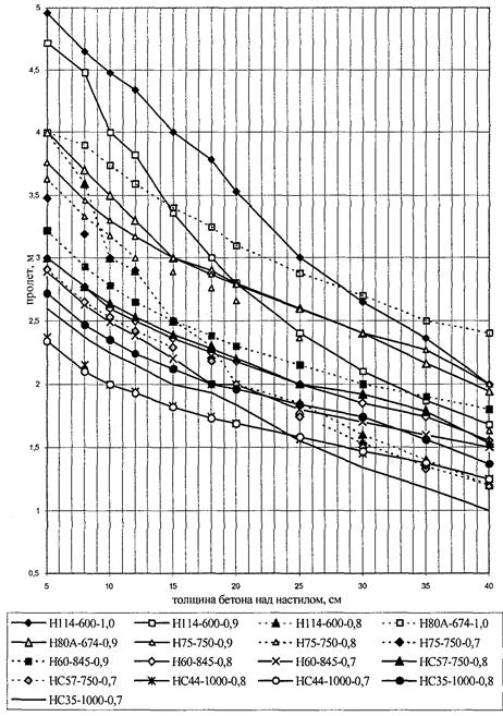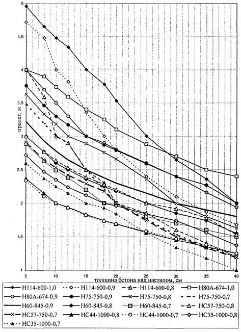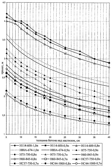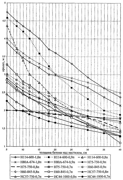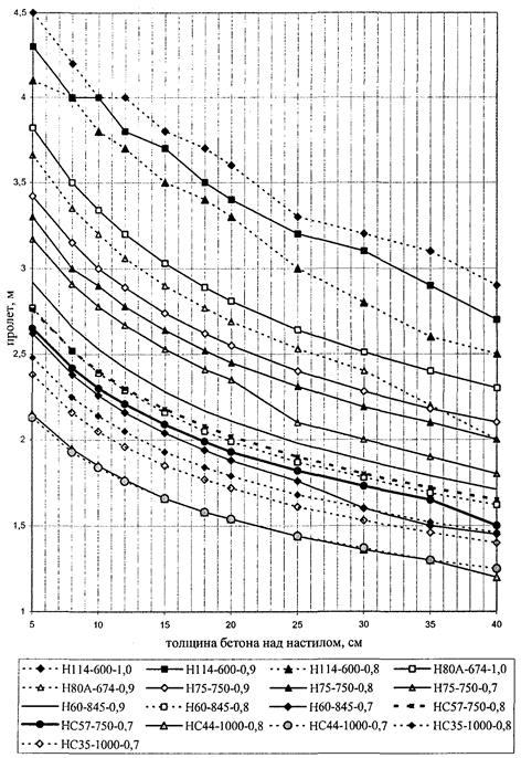 6.2 Минимальную толщину бетона над профилированным настилом рекомендуется применять 30 мм, а при отсутствии бетонной стяжки пола не менее 50 мм, над верхним концом анкерного упора не менее 20 мм или 1,3 диаметра вертикального опорного анкера.