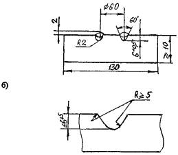 14.6Конструкция плоских образцов для качественной оценки склонности к горячимтрещинам по ГОСТ26389 применительно к корпусам аппаратов принимается по типу 9 б спроточкой на вырезаемом из корпуса образце со стороны поверхности, обращенной крабочей среде (рисунок 14.2).