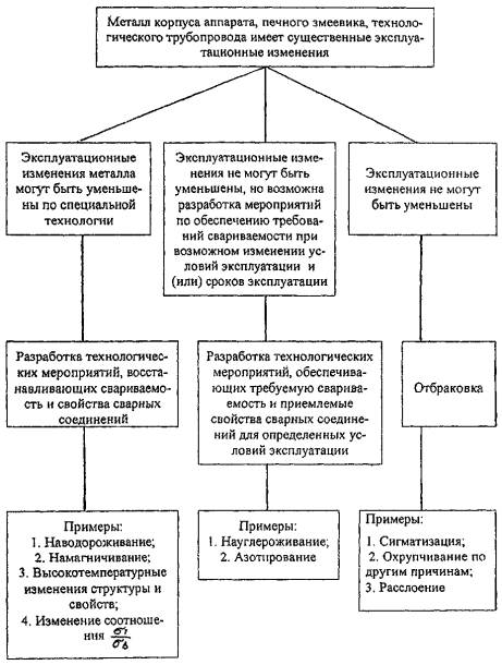 14.9 Уточнение характера,природы и степени эксплуатационного изменения металла, отрицательно влияющегона свариваемость и свойства получаемых сварных соединений, возможно только прикомплексной оценке по специальным методикам специалистами различноготехнического профиля, поэтому такую оценку выполняет специализированнаянаучно-исследовательская организация по эксплуатации и ремонтунефтехимоборудования ОАО «ВНИКТИнефтехимоборудование».