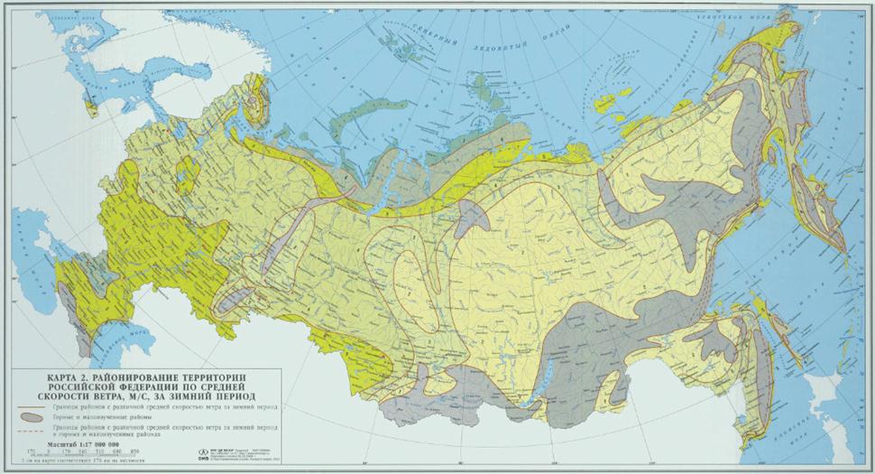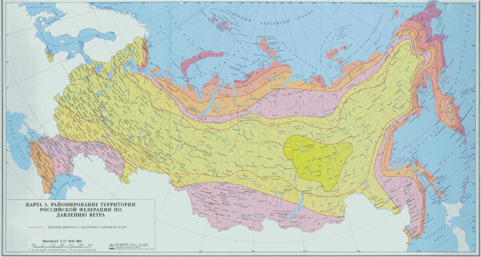 Районирование территории Российской Федерации по давлению ветра
