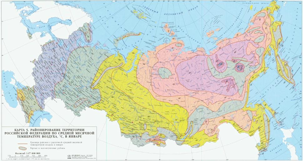 Районирование территории Российской Федерации по средней месячной температуре воздуха, °С, в январе