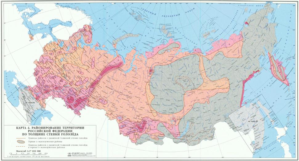 Районирование территории Российской Федерации по толщине стенки гололеда