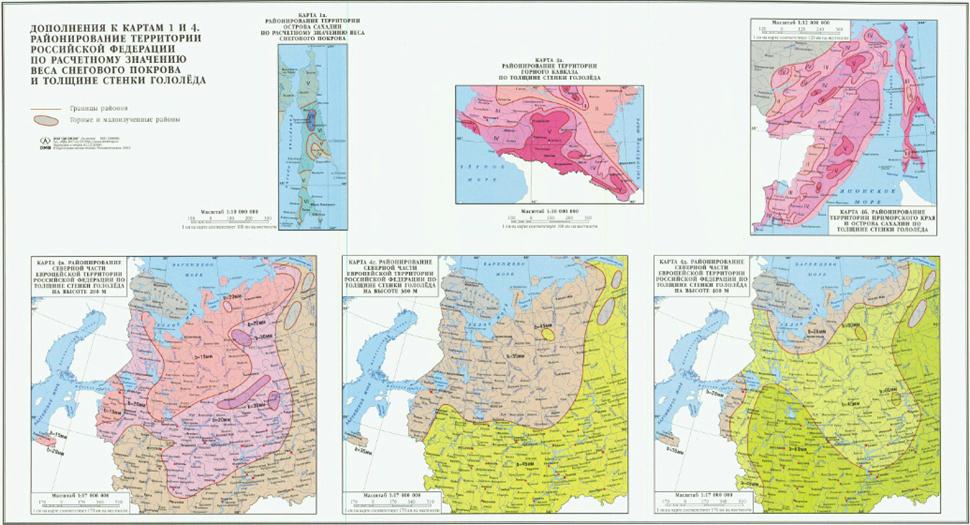 Районирование территории Российской Федерации по расчетному значению веса снегового покрова и толщине стенки гололеда