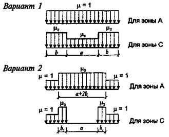 б) нагрузку от нескольких источников, если их совместное действие учтено в нормативном и расчетном значениях нагрузки (нагрузку от оборудования, людей и складируемых материалов на одно или несколько перекрытий с учетом коэффициентов j1 - j4, приведенных в пп. 3.2.4 и 3.2.5; нагрузку от нескольких мостовых или подвесных кранов с учетом коэффициента jl, приведенного в п. 4.19; гололедно-ветровую нагрузку, определяемую в соответствии с п. 7.3).