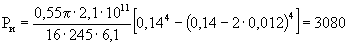 б) qг = 0,5 · 5,37 · π · 1,57 · 104 (1 + 0,37) · 0,142 = 3560 Н/м.