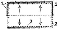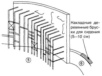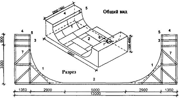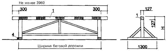 1 - сиденья из пластика или скамеечного типа; 2 - настил из листовой просечно-вытяжной стали, ламинированной фанеры с противоскользящим покрытием и т.п.; 3 - легкое покрытие в виде тента из ткани ПВХ или конструкций из ячеистого поликарбоната; 4 - борт хоккейной коробки