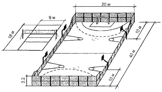 2. В два и более ряда для всех видов площадок, кроме теннисных