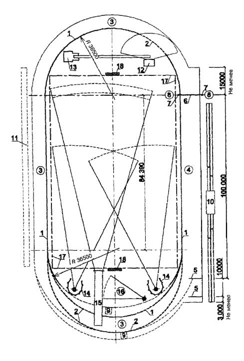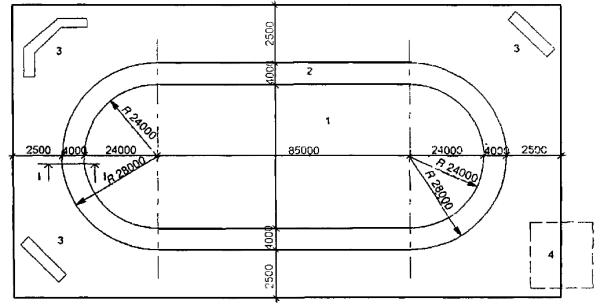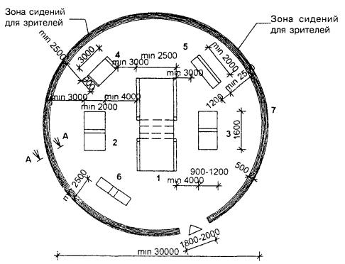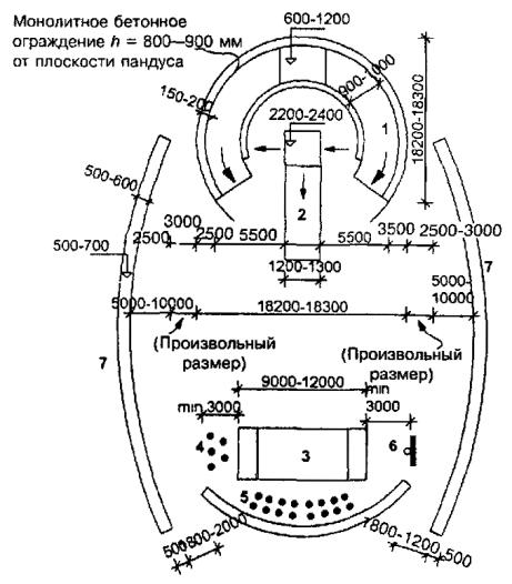 Заданием на проектирование устанавливаются состав открытых плоскостных сооружений (рисунок 1.1*), требования к их блокировке, наличию мест для зрителей и мест для стоянки личного автотранспорта.
