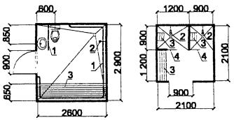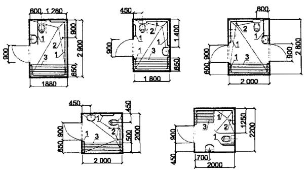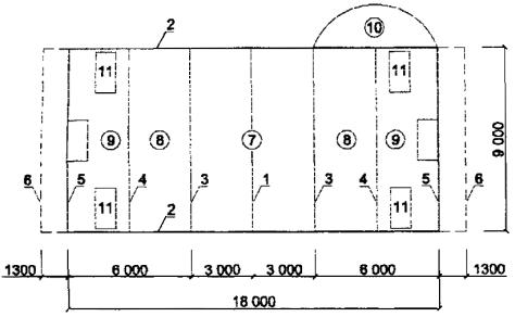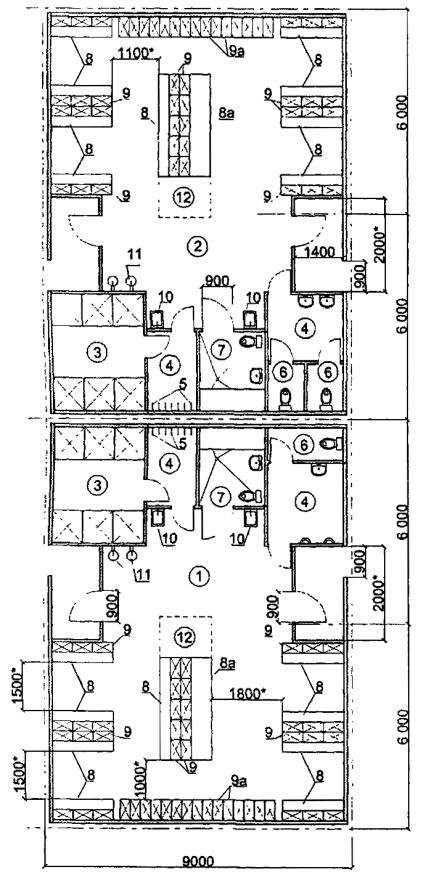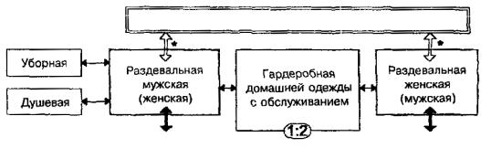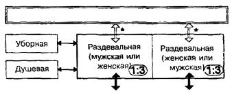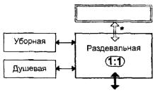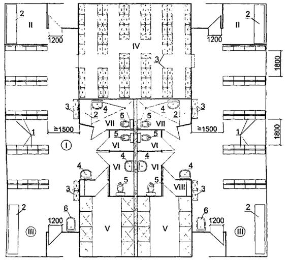 1 - ожидальная; 2 - кабинет врача (медсестры); 3 - уборная, приспособленная для пользования инвалидами с ПОДА; 4 - сантехническая кабина для инвалидов с ПОДА (при отсутствии инвалидов может использоваться остальными посетителями и сотрудниками); 5 - помещение для допинг-контроля; 6 - душевая, приспособленная для пользования инвалидами с ПОДА; 7 - кабина для переодевания с душевой; 8 - открытые туалетные отсеки; 9 - преддушевая