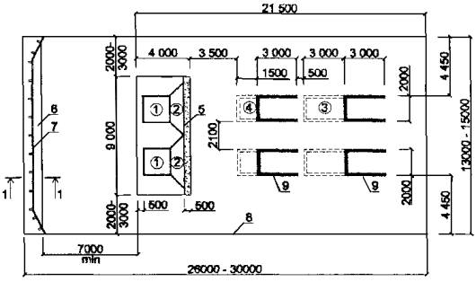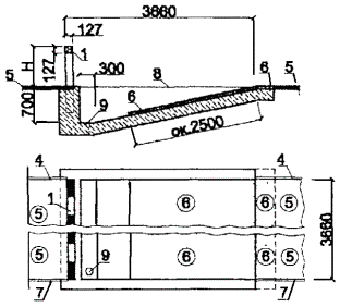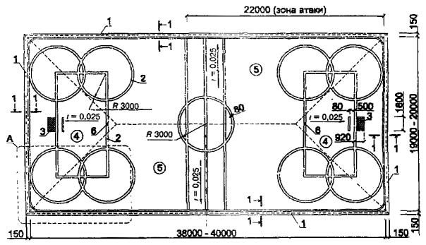 1 - водоотводный лоток (открытый или закрытый); 2 - закрытый водоотводный лоток