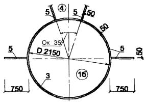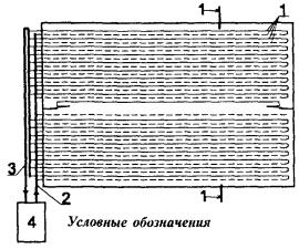 1 - отопительные трубы d = 25 мм; 2 - коллекторная труба; 3 - распределительная труба; 4 - индивидуальный тепловой пункт