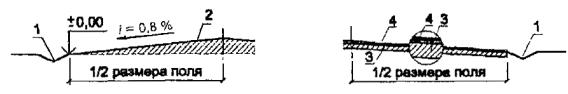 В. УСТРОЙСТВО УКЛОНОВ ПОВЕРХНОСТИ ГРУНТОВОГО ИГРОВОГО ПОЛЯ ИЛИ ПЛОЩАДКИ