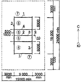 1 - кабинет руководителя пресс-бюро; 2 - рабочие помещения сотрудников пресс-бюро (в том числе редакторов); 3 - помещение раскладки материалов для корреспондентов; 4 - помещение получения материалов корреспондентами; 5 - рабочее помещение корреспондентов; 6 - междугородный телефонный переговорный пункт; 7 - телетайпная; 8 - пресс-бар; 9 - машинописное бюро*; 10 - помещение для множительной техники*