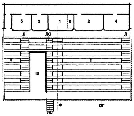 Л - лестница на трибуне; ЛС - служебная лестница; ОГ - ограждение; Ф - финишный створ