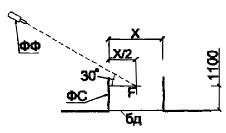 ФФ - камера фотофиниша; ФС - финишная стойка; X - расстояние между финишными стойками; Р - фокус; бд - поверхность беговой дорожки