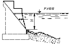Н - глубина воды у подошвы насыпи, исчисляемая отстатистического подпертого уровня воды перед насыпью (ПУВВ), складывается изглубины воды у насыпи до размыва Нби глубины размыва h.
