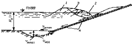 Поскольку υдmax> υд(0), необходимо укрепление подошвы откоса.