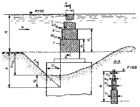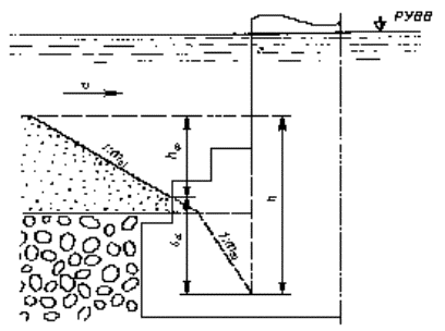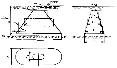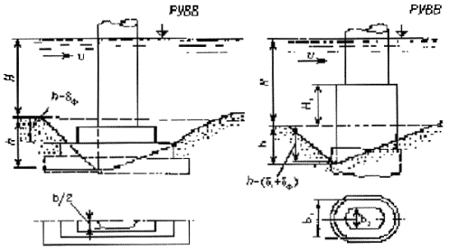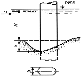Рисунок 5.1 - Опора с постоянной шириной от расчетного уровня воды(РУВВ) до дна воронки местного размыва