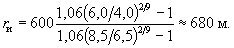 По формуле (8.13)при Н = Нрбр = 4 м, υр = υрбр =0,8 м/с, υ0 = 0,77 м/с (при глубине потока 4 м), rи = 600 м и r = 600 +