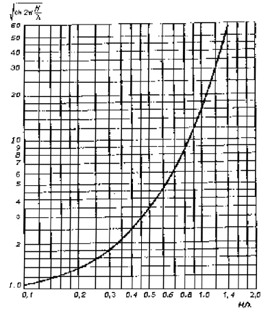 - по графику(см. рисунок С.2)находим для полученного значения гиперболической функции H / l = 0,63;