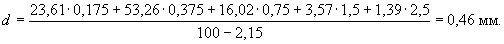 =0,67 × 6,5 × e1,12 - 8,5 =13,3 - 8,5 = 4,8 м.