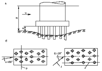 где hе - глубина размыва, определяемая по формулам (5.3)или (5.4)при положении низа плиты ростверка относительно дна после общего размыва,равном е = 0,3Н (рисунок 5.5);