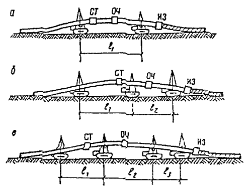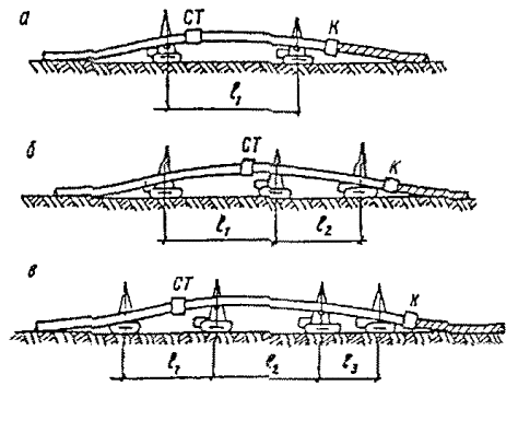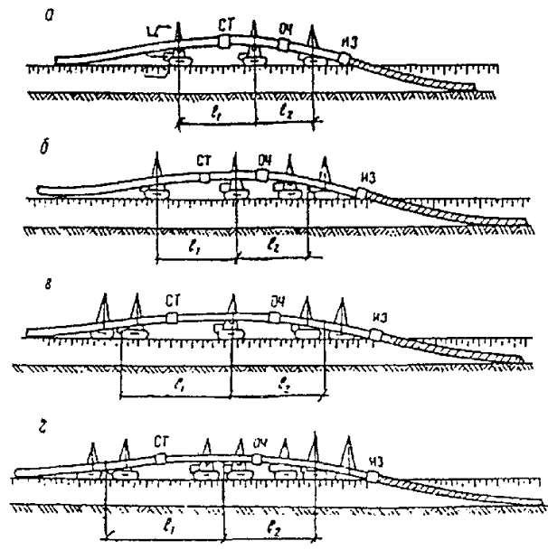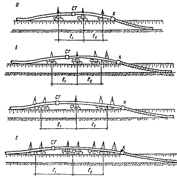 Так, для трубопровода диаметром 219 мм при значении К=3,4, L= 44,8 м. Этот же параметр L (расстояние между первым и последним трубоукладчиками) при укладке трубопровода из труб с толщиной стенки 8 мм составляет всего 17,8 м; здесь достаточно иметь в колонне два трубоукладчика.