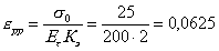 9. Определяем допустимую степень растяжения материала в стенке трубы, происходящего в условиях релаксации по (Д. 15) при σ = 25 МПа
