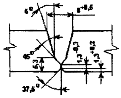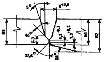 МЕТАЛЛ СОЕДИНИТЕЛЬНЫХ ДЕТАЛЕЙ Прочностной класс: Х60/Х60 Фактические механические свойства: sТ44/sТ-; sв60/sв-; (кГс/м2) Сэкв 0,38/0,36 и Рсм 0,22/0,22 Диаметр и толщина стенки: Дв410´(16¸18)/Дн 433´11 (мм) Конструкция сварного соединения: V-образная разделка (см. табл. ...), разнотолщинное соединение; |