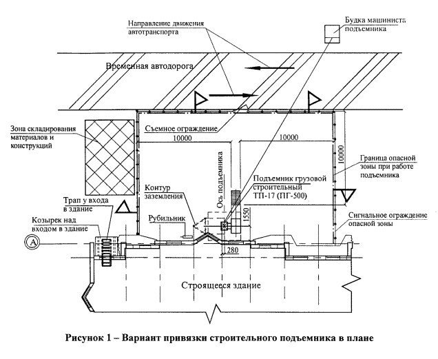 -требования к выполнению строительных, монтажных и специальных строительныхработ с использованием строительных мачтовых подъемников в условияхдействующего объекта.