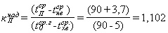 По формуле (2.3) определяемпоправочный коэффициент к нормам плотности теплового потока, представленным втабл. 2.2, 2,3 и рассчитанным приопределенных среднегодовых значениях температур теплоносителя и грунта дляподземной прокладки трубопроводов: