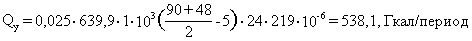 | Св=1ккал/кг °С; | tсрП = 90°С; | tcpхв = 5°С | VTC = 639,9м3; |