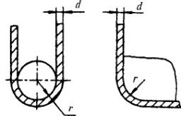 2.4.10. При изготовлении элементов, указанных в пп. 2.4.8 и 2.4.9, холодной гибкой относительные радиусы гибки (по внутренней поверхности) не могут быть меньше значений, приведенных в табл. 2.