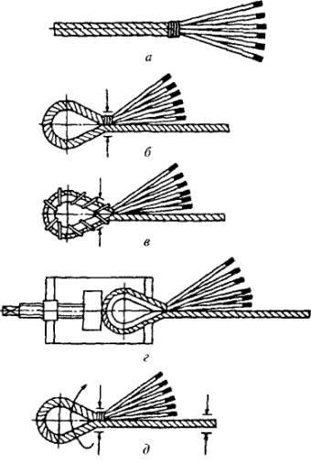Последний прокол каждой прядью должен производиться половинным числом ее проволок (половинным сечением пряди).