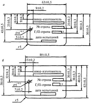 Грузоподъемность стропа ___________________________________________________ Номер нормативного документа (технологической карты) ________________________ __________________________________________________________________________ Обозначение стропа по РД 10-33-93 или по нормативной документации изготовителя __________________________________________________________________________ Товарный знак (эмблема) предприятия-изготовителя стропа ______________________ __________________________________________________________________________ Наименование изготовителя, его адрес ________________________________________ __________________________________________________________________________ Чертеж стропа с указанием длины стропа ______________________________________ Масса стропа ______________________________________________________________ Порядковый номер стропа по системе изготовителя _____________________________ Год и месяц выпуска стропа _________________________________________________ Дата испытаний стропа ______________________________________________________ Результаты испытаний ______________________________________________________ Гарантийный срок __________________________________________________________ Условия, при которых может эксплуатироваться строп: наименьшая температура окружающего воздуха __________________ °С наибольшая температура перемещаемого груза ___________________ °С Подпись