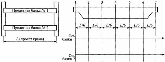 1. Тележку устанавливают в середине пролета (или в крайнем рабочем вылете консоли - при проведении испытания на консоли козлового крана).