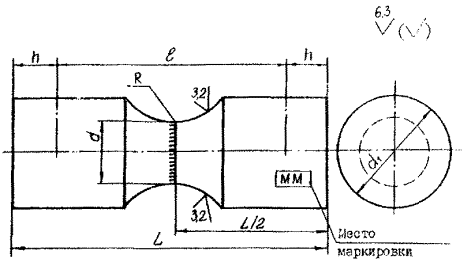 2. Гладкий цилиндрический образец диаметром от 8 до 10 мм