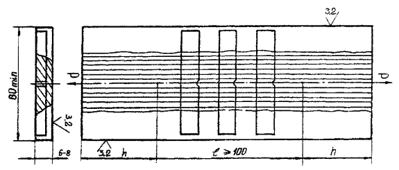На образцах из хрупкого материала границы расчетной длины наносят электроискровым методом или другими способами, исключающими повреждение поверхности образца.