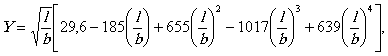 Безразмерная функция Y3, зависящая от относительного размера трещины l/b, равна