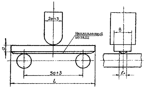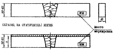 испытание сварного соединения и наплавленного металла на (технологическая проба с наплавленным валиком) статический изгиб (загиб);