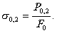 Условный предел текучести оценивают при растяжении как частное от деления нагрузки Р0,2 (нагрузка, отвечающая пределу текучести при допуске 0,2% на величину остаточного удлинения) к начальной площади поперечного сечения образца (F0):