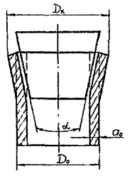 3.3. Для определения критического раскрытия трещины необходимо точно знать расширение надреза в момент распространения трещины. Измеренное на поверхности образца расширение надреза следует определять по снятой диаграмме "нагрузка-перемещение" (расширение надреза черт. 5а, б; 6а). Расчет критического раскрытия трещины dС (мм) у основания производится по формуле: